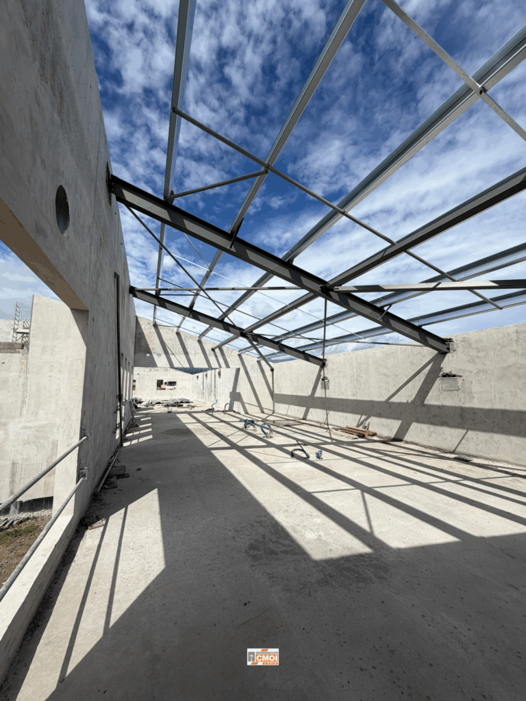 De l’assemblage des structures en acier jusqu’à la pose des éléments de couverture et de bardage, chaque étape est menée avec rigueur, précision et exigence technique.