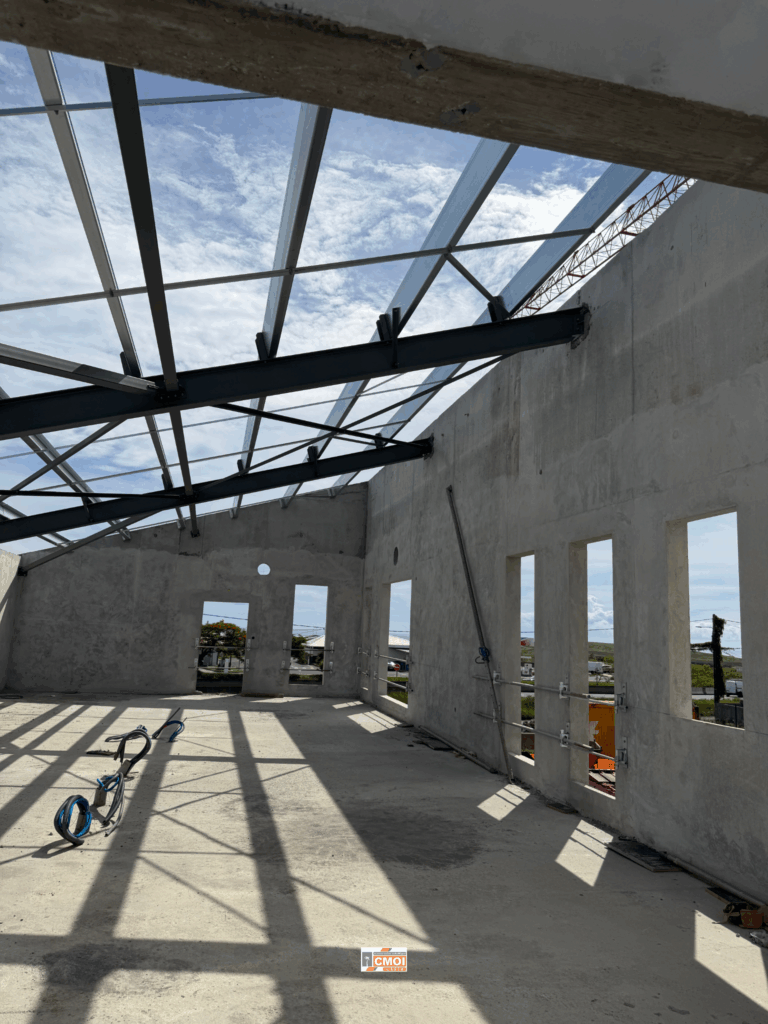 À Saint-Pierre, ce nouveau chantier met en lumière le savoir-faire de nos équipes dans la réalisation d’ouvrages de charpente métallique et d’enveloppe du bâtiment.